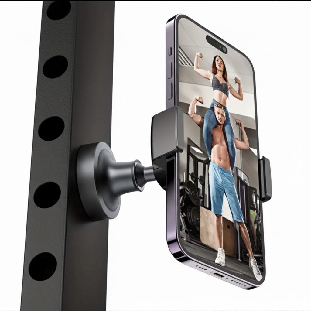 ジム用 マグネット式スマホホルダー|強力磁石・コンパクト設計|筋トレ・自撮り・動画撮影対応